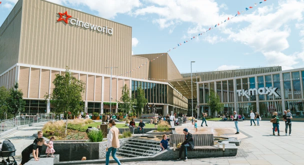 Phase 2 consisted of 100,000 sq. ft. of retail and leisure spaces, over 25,000 sq. ft. of cafes and restaurants framing a new landscaped public square, alongside the 13-screen Cineworld, Superbowl UK and multi-storey car park.